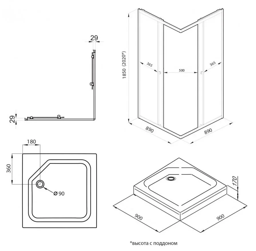 Душевой уголок Triton Вента-Хром-Вельвет Щ0000067981 90x90 см на поддоне профиль хром стекло матовое купить