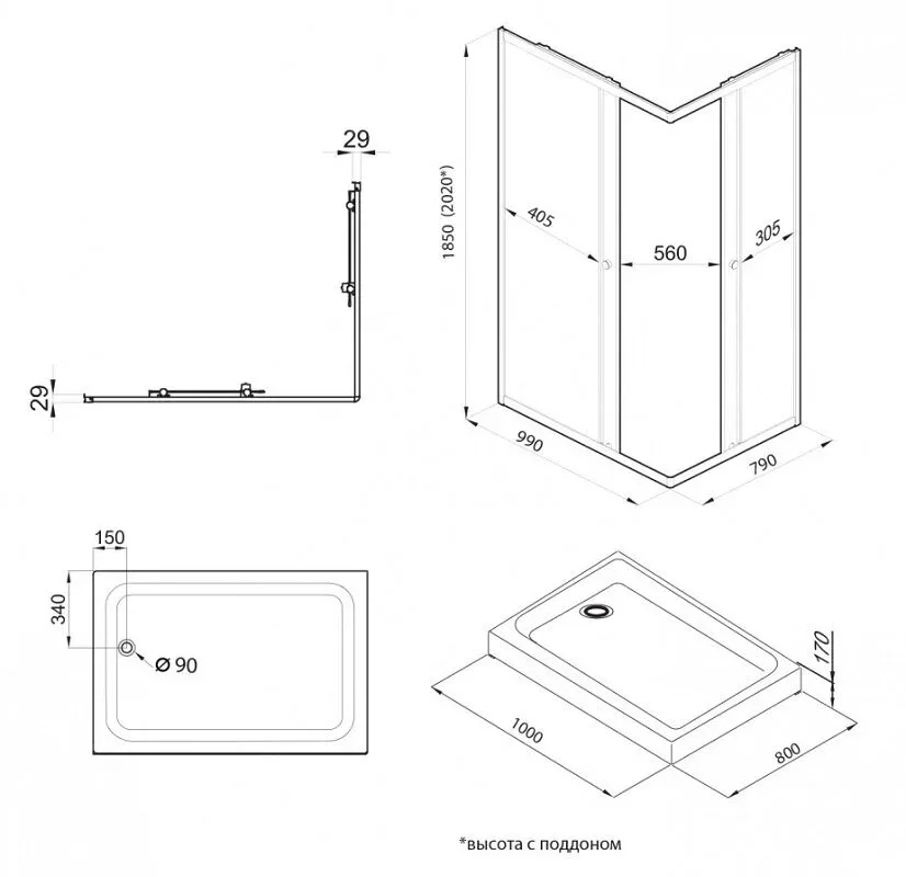Душевой уголок Triton Вента Щ0000049617 100x80 см профиль хром стекло прозрачное купить
