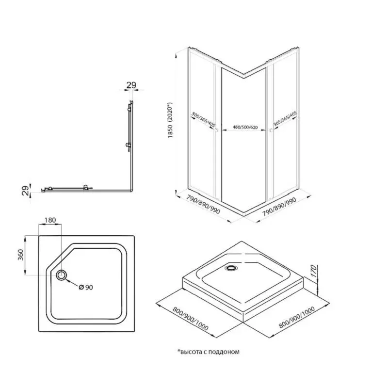 Душевой уголок Triton Вента Щ0000054463 100x100 см профиль чёрный стекло прозрачное купить