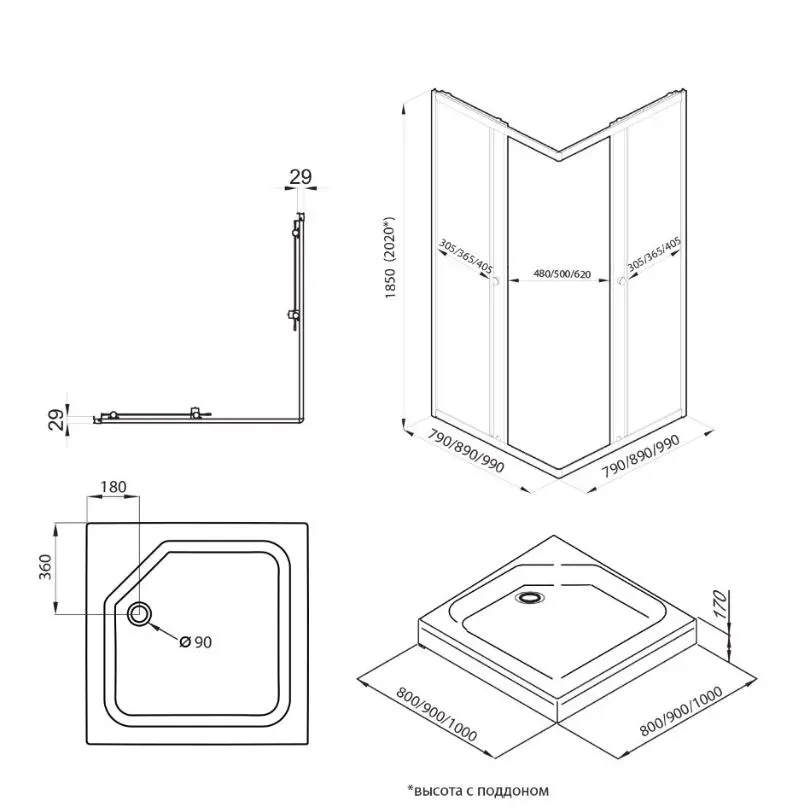 Душевой уголок Triton Вента Щ0000054477 100x100 см профиль чёрный стекло прозрачное купить