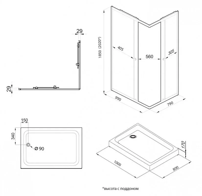 Душевой уголок Triton Вента Щ0000057855 100x80 см профиль чёрный стекло прозрачное купить