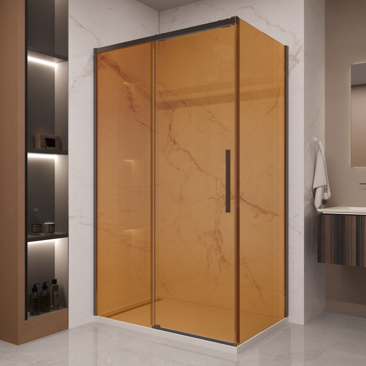 Душевой уголок Vincea Stella VSR-1ST9012GSB, 1200*900, черный, стекло янтарь