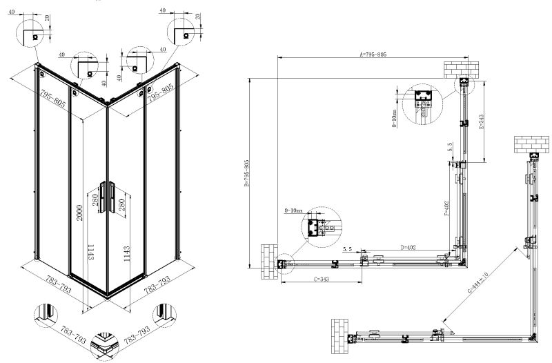 Душевой уголок Vincea Ultima VSS-7UL8080CLGM, 800*800, вороненая сталь стекло прозрачное