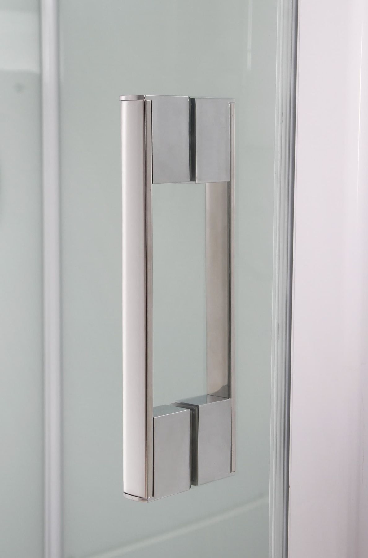 Стекло 6 мм. Задняя стенка - крашеное непрозрачное белое . Фронтальное стекло и боковые стекла прозрачные. Дверь стекло прозрачное.