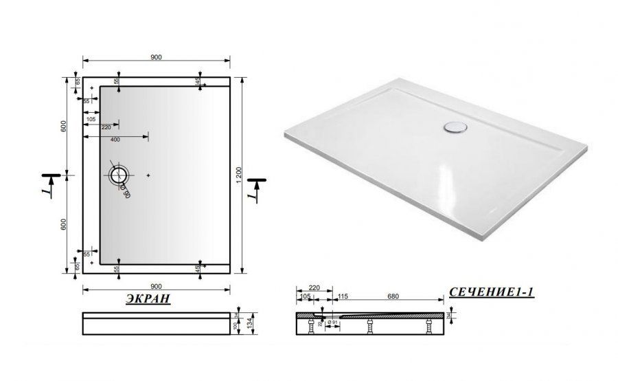 Экран для поддона Эстет Каппа ФР-00004727 120x90см