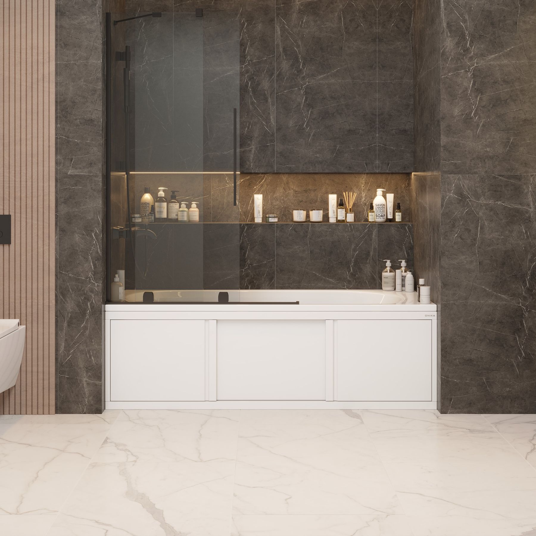 Универсальный экран под ванну 150 см Onika Одио скрывает все расположенные под ванной коммуникации и служит профилактикой скопления загрязнений под чашей ванны.
