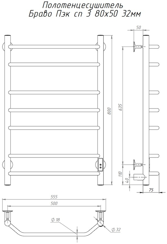 Электрический полотенцесушитель Тругор Браво Пэк сп 3 80x50см хром БравоПэксп3/805032