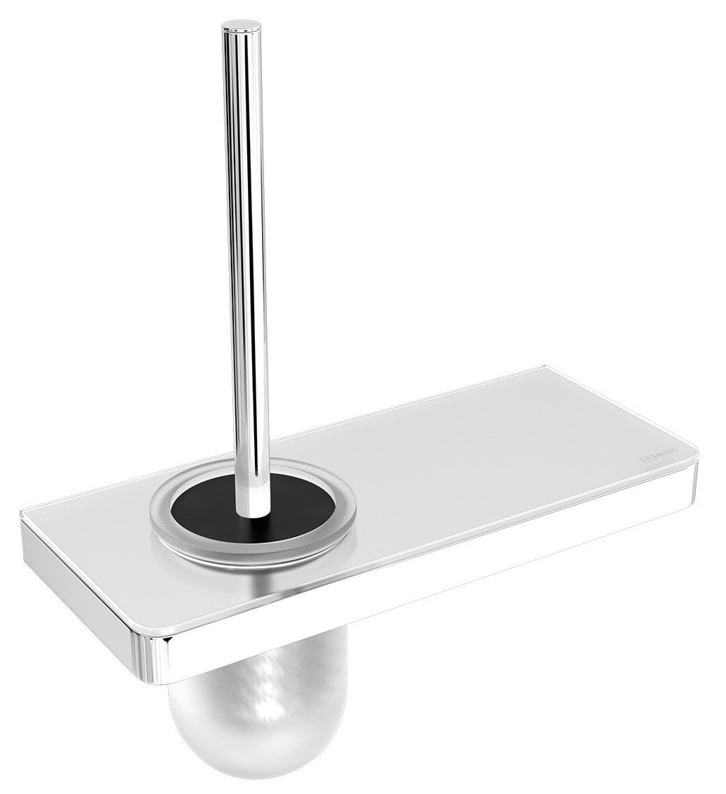 Ёршик для унитаза Lemark Glass Line 9761031 с держателем и полкой хром/белое стекло