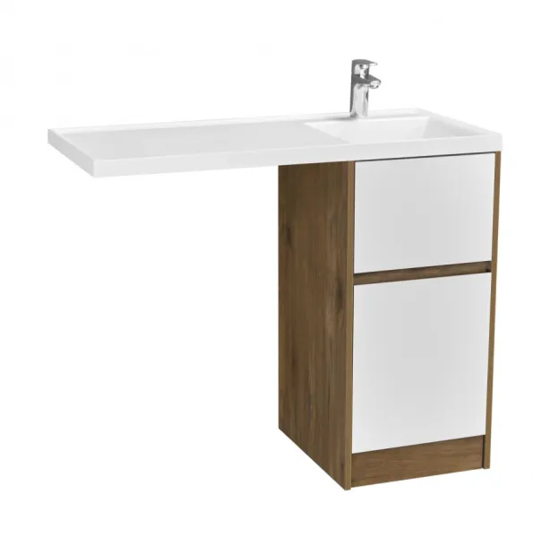 Комплект фасадов для тумбы Лондри под стиральную машину выполнен из влагостойкой ламинированной плиты и окрашен в белоснежный цвет с высокой степенью глянца полиэфирной краской ультрафиолетового отверждения. Данный способ окрашивания обеспечивает изделию привлекательный внешний вид, а также износостойкость и долговечность. Корпус тумбы и фасады приобретаются отдельно. Верхний ящик открывается с помощью системы push-to-open, а нижний - за фасад с помощью удобного выпила под углом. Ящики выдерживают нагрузку до 25 кг. Тумба установлена на регулируемые опоры, которые находятся за цоколем. Тумба комплектуется раковиной Лондри 105 из прочного литого мрамора, который устойчив к воздействию химических средств. Широкое крыло раковины обеспечивает ванную комнату дополнительным функциональным пространством. Дополнительно к тумбе можно приобрести шкаф-колонну Лондри и зеркальный шкаф Лондри 100.