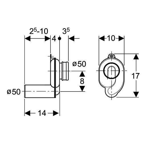 Geberit 152.950.11.1 Сифон для писсуара, горизонтальный, d50