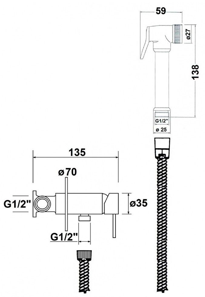 Готовый комплект гигиенического душа;скрытый монтаж;латунная лейка;хром.