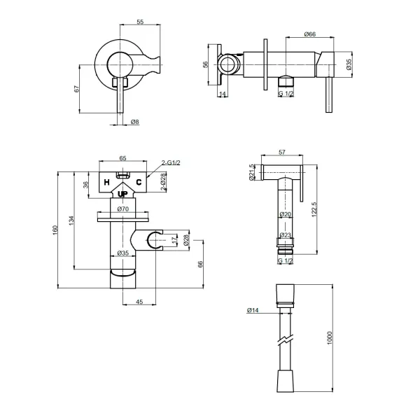 Гигиенический душ AQUAme Siena AQM6217BN со смесителем никель брашированный