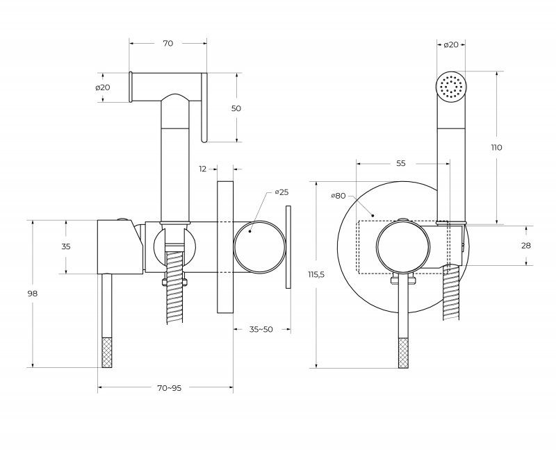 Гигиенический душ Cezares Relax RELAX-DIF-01 С ВНУТРЕННЕЙ ЧАСТЬЮ