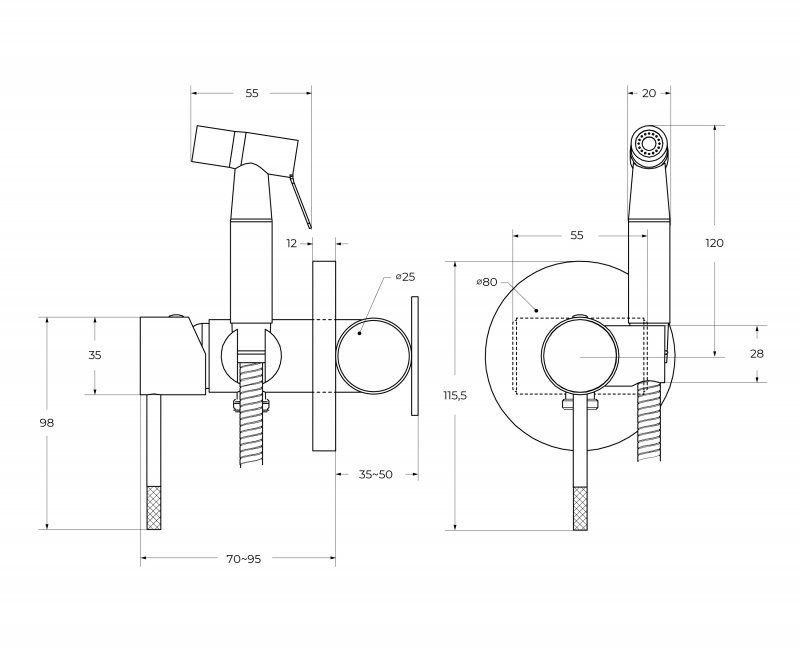 Гигиенический душ Cezares Relax RELAX-DIF-NOP С ВНУТРЕННЕЙ ЧАСТЬЮ, чёрный