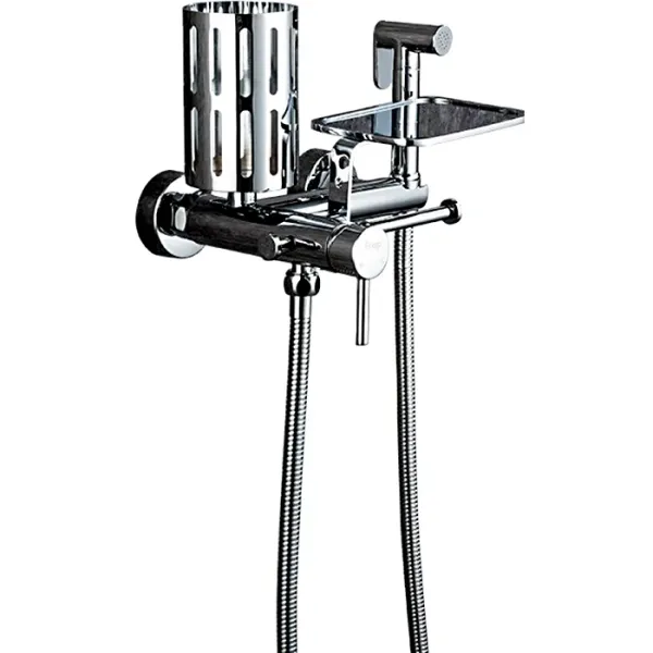 Оснащение: душевой шланг, держатель для душа, полочка, держатель туалетной бумаги, держатель освежителя воздуха