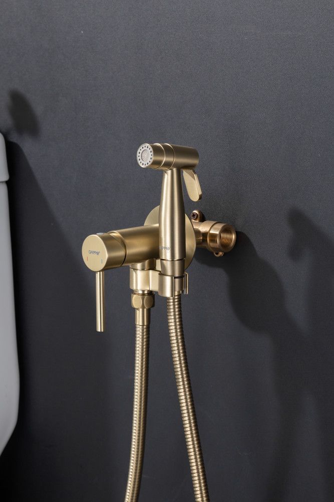 Гигиенический душ G7206-3 - удобный и функциональный аксессуар, который позволяет обеспечить идеальный уровень чистоты и гигиены. Если вы стремитесь к полному комфорту и чистоте, то смело обратите внимание на этот гигиенический душ на унитаз, выполненный в цвете сатиновое золото матовое. Независимо от того, используете ли вы его в ванной комнате или туалете, этот душ станет незаменимым помощником в поддержании идеальной гигиены. Смеситель для биде обеспечивает очищение и освежение сравнимые с приемом душа или ванной, но с большей точностью и удобством. Смеситель гигиенического душа Gappo позволяет легко регулировать напор и температуру воды, чтобы создать идеальные условия для комфортного использования лейки для биде.