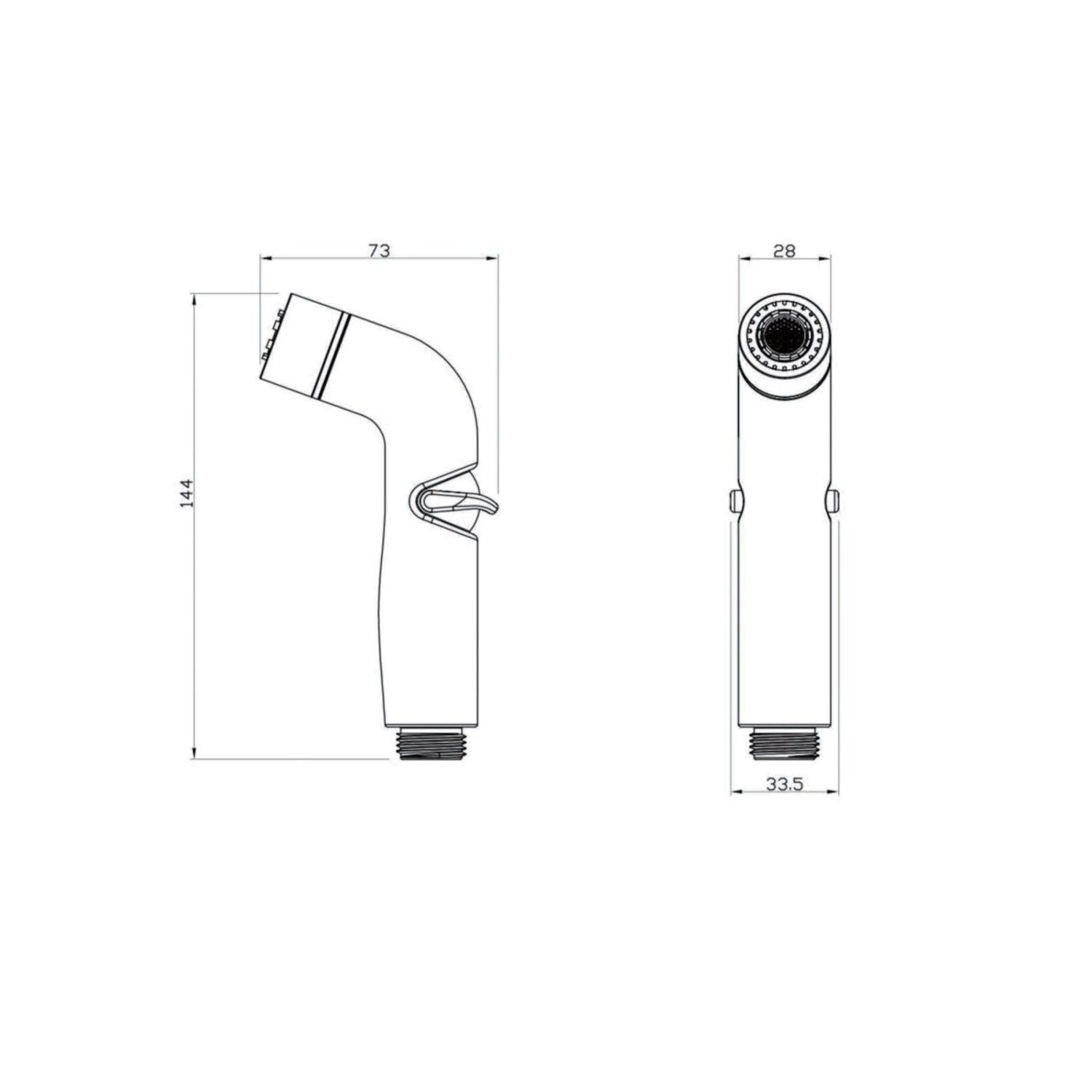 Гигиеническая лейка, 2 режима (Дождь и Аэроструя), диаметр 28 мм, размер 73х144 мм, хром, материал ABS-пластик. Переключение режимов осуществляется поворотом носика.