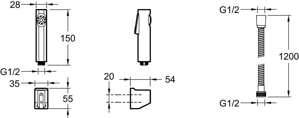Гигиенический душ Jacob Delafon CUFF E98100-CP со шлангом 120 см и держателем
