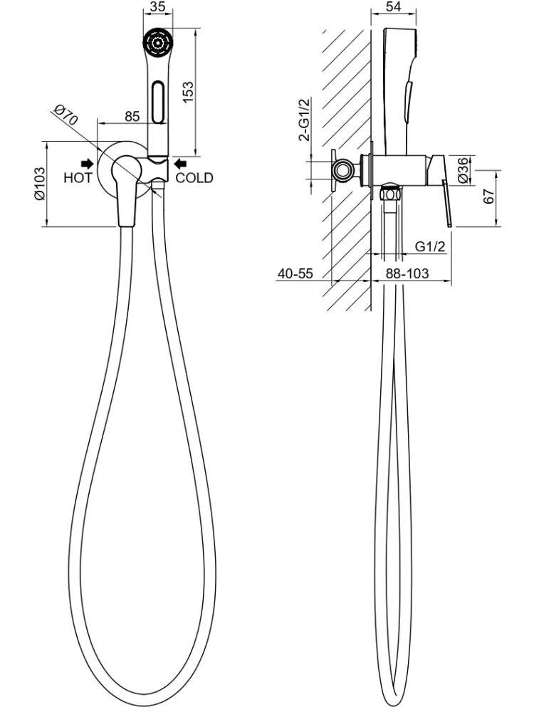 Ручной душ для биде из пластика