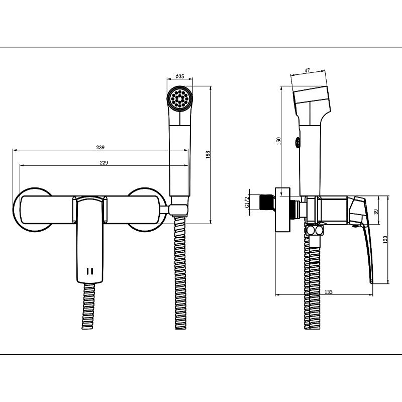 Гигиенический душ Azario Conda со смесителем, керамический картридж, шланг 150 см, графит
