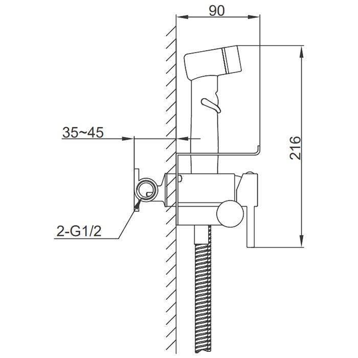 В комплекте:Душевой шланг 120 см, С гигиеническим душем, Держатель лейки