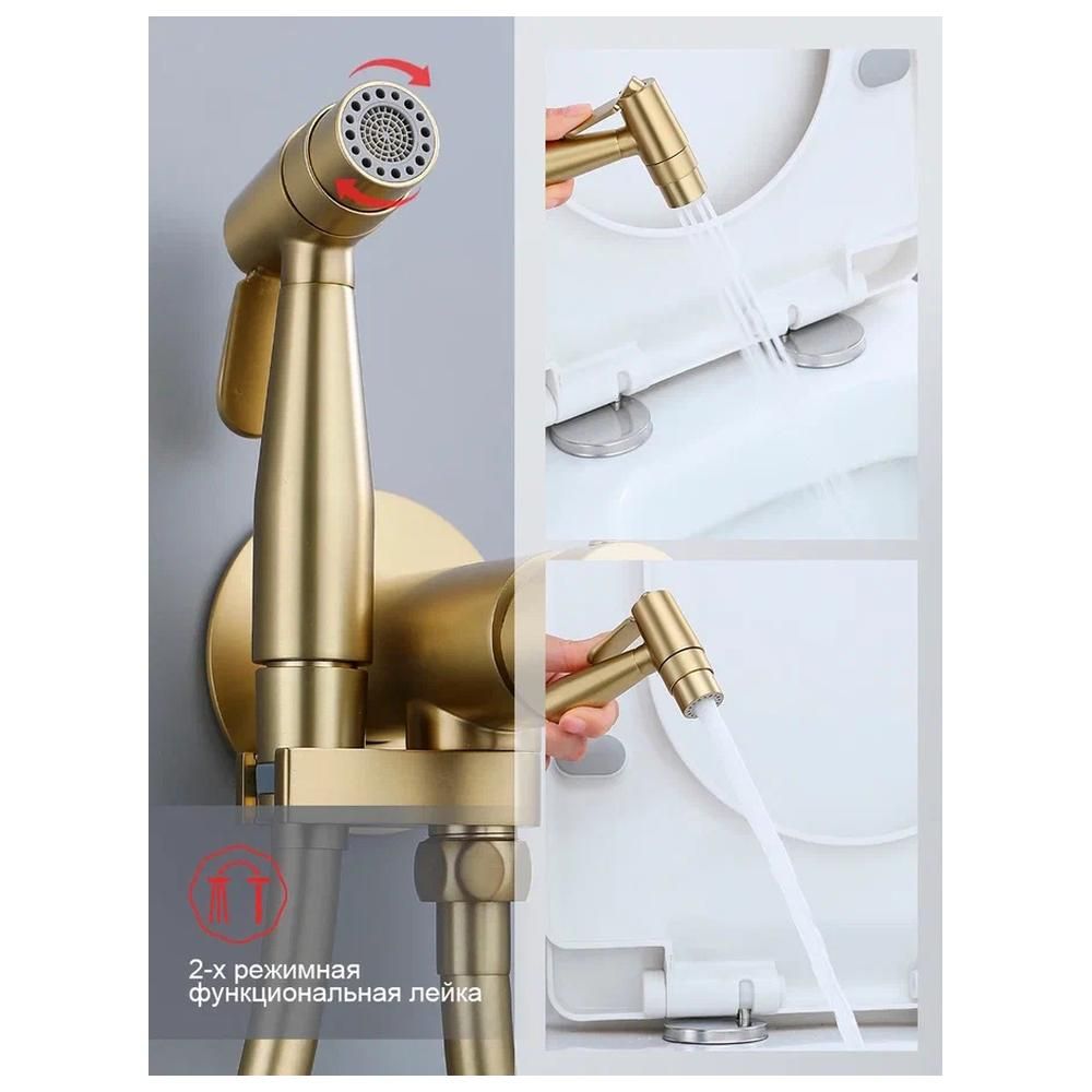 Гигиенический душ со смесителем встраиваемый Raglo R20.54.03, сатин золотой