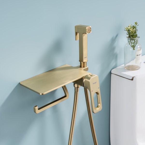 Гигиенический душ со смесителем Raglo R51.55.03 с полкой и бумагодержателем золотой сатин
