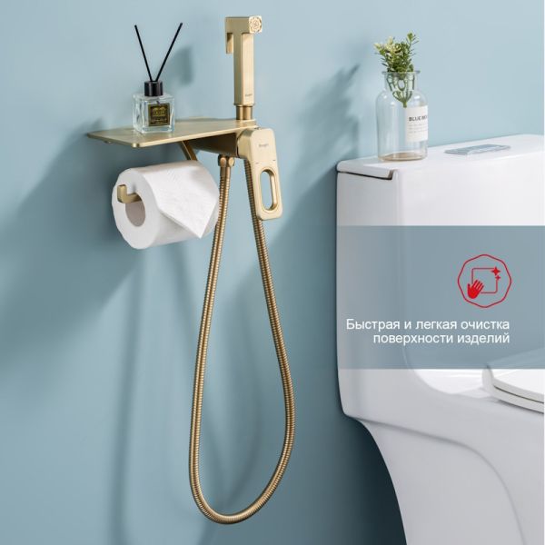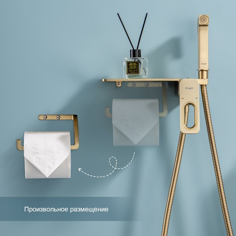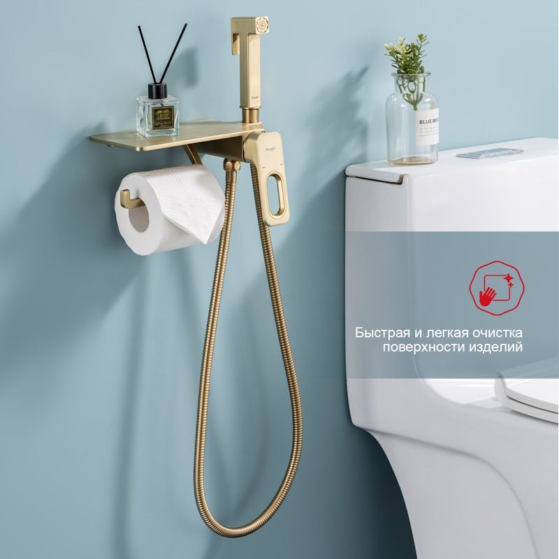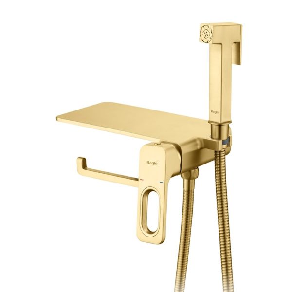 Гигиенический душ со смесителем Raglo R51.55.03 с полкой и бумагодержателем золотой сатин купить