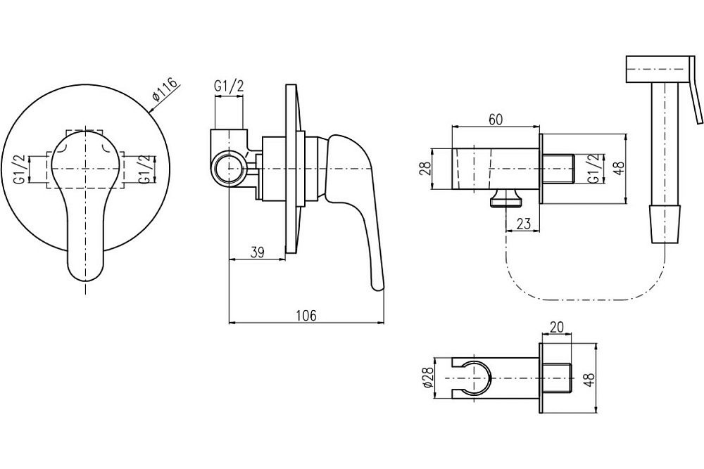 Смеситель/Лейка/Шланг/Держатель