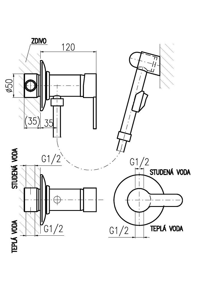 Гигиенический душ со смесителем Rav Slezak Zambezi ZA047 хром
