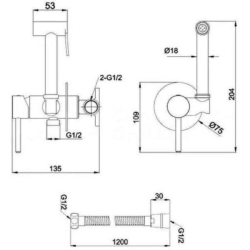 Душевой шланг длиной 1200 мм с защитой от перекручивания.