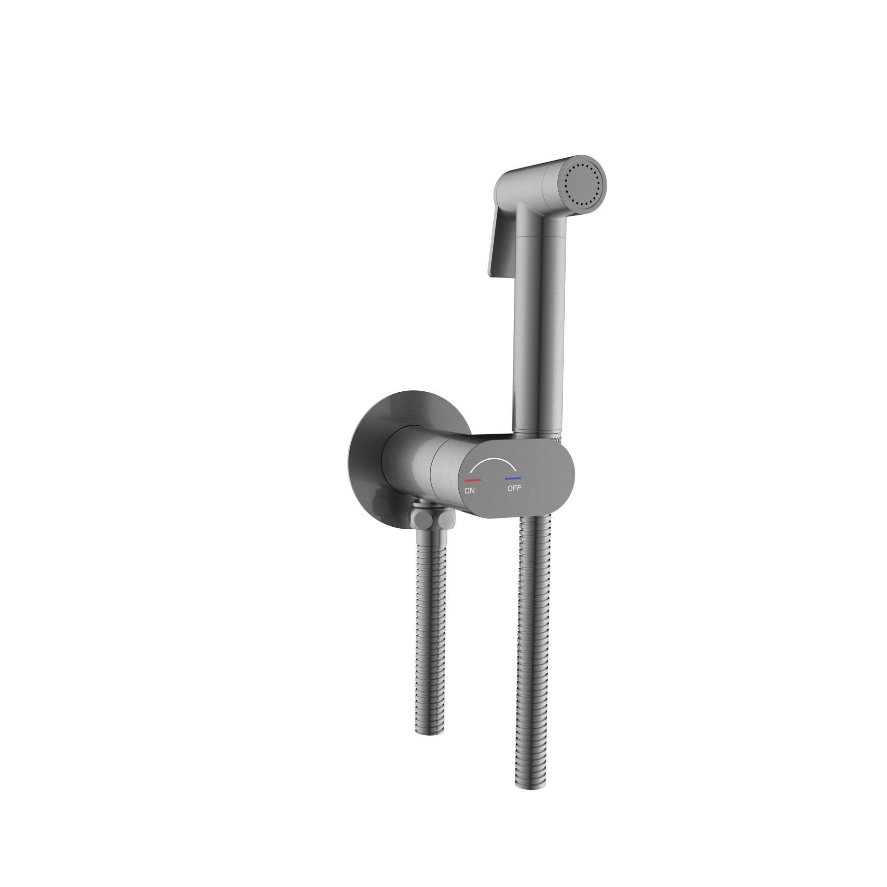 Самый миниатюрный комплект Гигиенического душа серого цвета со смесителем и краном держателем лейки, скрытого монтажа RGW SP-213Gr, с прогрессивным поворотным картриджем, оснащён функцией «Умная блокировка». Гигиенический душ со смесителем круглой формы, инсталляционный, встройка в стену RGW SP-213Gr — это сантехническое оборудование, придуманное для соблюдения личной гигиены. Обычно его устанавливают возле унитаза, тем самым в небольших пространствах ванных комнат он заменяет биде. Первое, что приходит на ум, когда слышите «Гигиенический душ для унитаза (гигдуш — в бытовом разговоре)» — это моментальная гигиена интимной зоны сразу после туалета без использования туалетной бумаги.Однако в современном быту гигиенический душ для туалета и биде приобретает и другие сценарии использования, например: