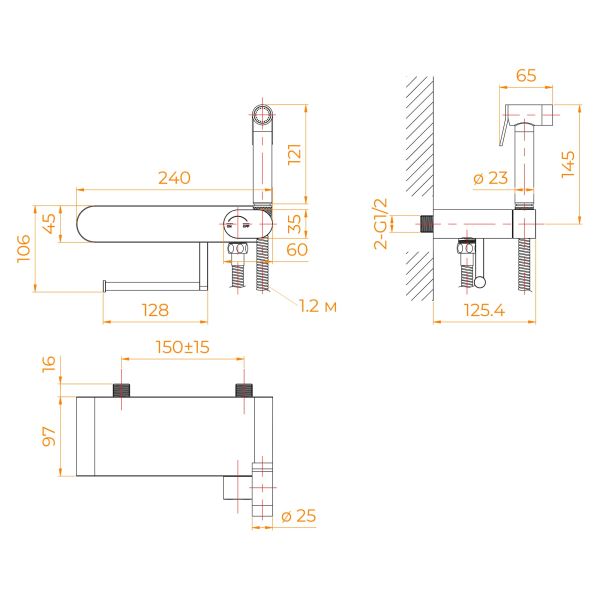 Смеситель RGW SP-222B произведен в виде полки, округлой формы, однорукий, то есть с однорычажным управлением, с подводкой двух потоков воды - горячей и холодной. Температура воды легко регулируется от прохладной до комфортно-тёплой ручкой смесителя.с подводкой двух потоков воды - горячей и холодной. Температура воды легко регулируется от прохладной до комфортно-тёплой ручкой смесителя.Устанавливается на стену открытым способом,обладает прогрессивным керамическим картриджем и функцией «Умная блокировка», его конструкция имеет два монтажных отверстия(диаметр монтажных отверстий — 35 мм, ширина монтажных отверстий — 150 мм),при установке межосевое расстояние можно регулировать с помощью эксцентриковый переходников, в диапазоне от 135 до 165 мм.Корпус смесителя гигиенического душа в этой модели выполнен в виде полки с держателем для туалетной бумаги/полотенца и полкой. Цельность конструкции смесителя с полкой — это важная составляющая долговечного использования.Во время и после применения душа не нужно идти за средствами гигиены и туалетной бумагой, благодаря смесителю с держателем и полочкой, все необходимое находится под рукой. Такая конструкция экономит место, так как не нужно устанавливать отдельно держатель и полочку, занимая дополнительно место на стене.Корпус его выполнен из высокопрочной сантехнической латуни под хромирование и гальваницию цветом.Лейка гигиеническая RGW SP-222B, универсальная, оснащена пружинным рычагом (клавишей) для подачи воды, который обеспечивает плавную регуляцию потока воды.Подача воды регулируется путем нажатия на пружинную кнопку.Струя из гигиенического душа выходит плотная, упругая и направленная.Форма струи в этой модели узконаправленная, что делает её удобной для гигиенических процедур.Она может быть как мягкой рассеянной, так и интенсивной, в зависимости от выбранного напора воды.Гибкий шланг «RGW — Стильные душевые» имеет длину 120 см и выполнен из материалов премиального качества, так как верхний слой состоит из металлической оплетки, которая защищает от внешних механических повреждений, а внутренний слой — это шланг из гибкого термостойкого полимерного силикона. Внутренний шланг устойчив к резким перепадам давления и гидравлическим ударам, со временем не образуются изломы, а также особый состав полимерного силикона исключает появление грибка и плесени.
