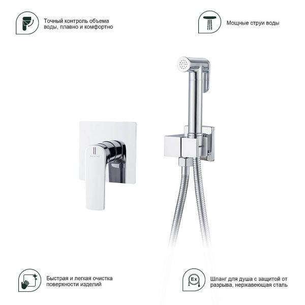 Гигиенический душ со смесителем представляет собой удобный альтернативный вариант стандартному биде. Шланг обладает достаточной длиной 120 см что вполне достаточно для комфортного использования. Лейка для гигиенического душа хорошо держится в руке и обеспечивает комфорт всех проводимых манипуляций с использованием биде для унитаза. В комплекте гигиенический душ, держатель лейки и душевой шланг . Душ гигиенический со смесителем настраивается как смеситель. Имеется нажимное переключение на душ и керамический картридж диаметром 30 мм. Присоединительный размер - G 1/2, предназначен для одного потребителя. Защита от обратного потока и ограничение температуры отсутствуют.