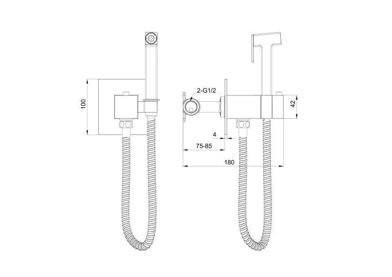 Смеситель с гигиеническим душем и термостатом, встраиваемая WONZON & WOGHAND, Черный матовый (WW-88829910-MB)