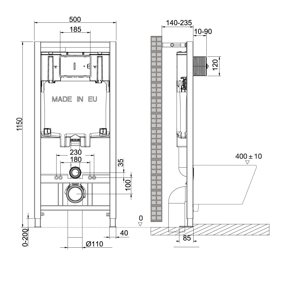 - Система установки подходит для лёгких и несущих стен и всех видов подвесных унитазов
