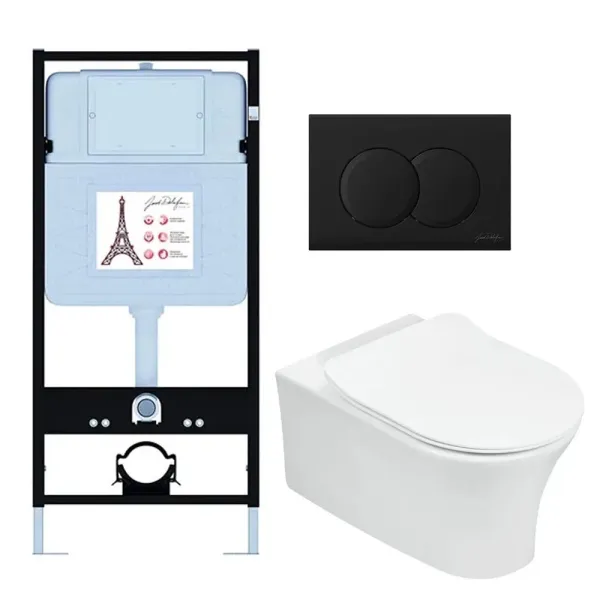 Инсталляция Jacob Delafon E21731RU-BL с безободковым унитазом Aleo сиденье с микролифтом клавиша смыва чёрная матовая купить