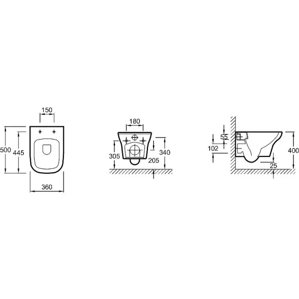 • Безободковая конструкция Rimless: высочайший уровень гигиены.