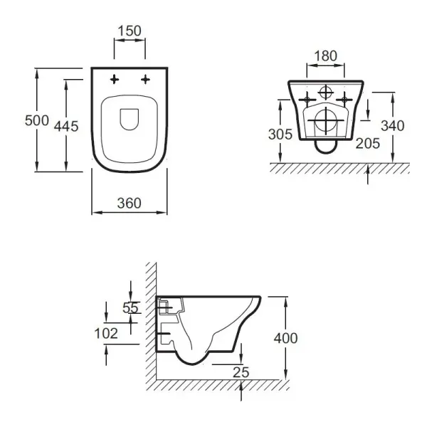 - Подвесной унитаз Jacob Delafon Vox EDM102, безободковый