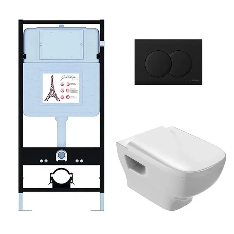 Инсталляция Jacob Delafon EDE103-BL с безободковым унитазом Struktura сиденье с микролифтом клавиша смыва чёрная матовая купить