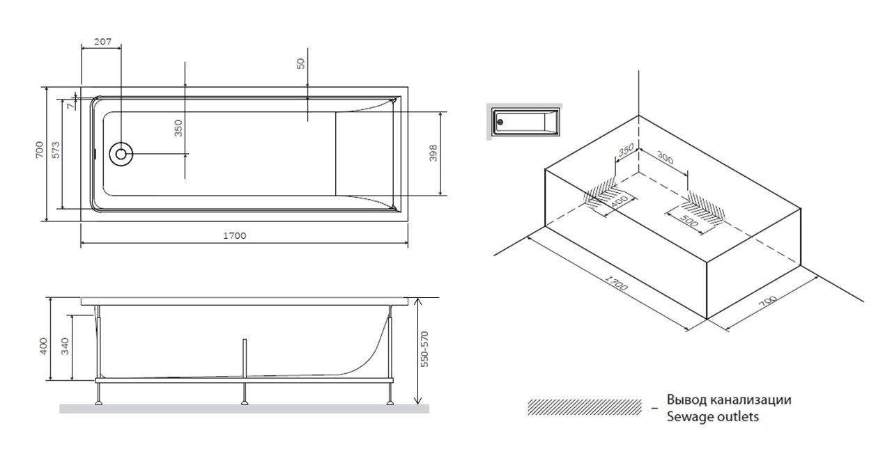 Каркас Am.pm Gem W90A-170-070W-R 170х70 см
