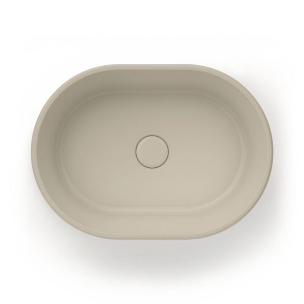 Песочная (бежевая) матовая накладная раковина без отверстия под смеситель, ширина 50 см. Донный клапан входит в комплект. Раковина устанавливается на тумбы и на столешницы и тумбы. Возможно использование с высокими смесителями или со смесителями, монтирующимися в стенуВнимание: для чистки черных и цветных изделий можно применять только мягкую губку и мыльный раствор. Использование моющих и абразивных средств запрещено.