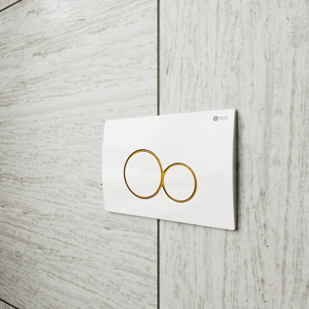 Клавиша смыва для инсталляции Point Виктория, белый/золото, PN44061WGКлавиша смыва Point - представляет собой деталь системы инсталляции, которая приводит в действие спуск воды в унитаз. Такая кнопка отличается комфортом и практичностью в эксплуатации, а также имеет эстетичный внешний вид.Кнопки для инсталляций Point – оптимальный выбор для любого санузла, так как обладают современным дизайном, высокой технологичностью и простотой в использовании.