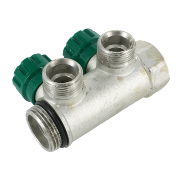 Коллектор модульный, 1, 2 контура, размер отвода-3/4 ЕК, EMW02.02T, вентили под 90°, TIN латунь купить