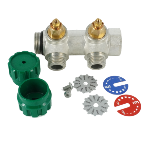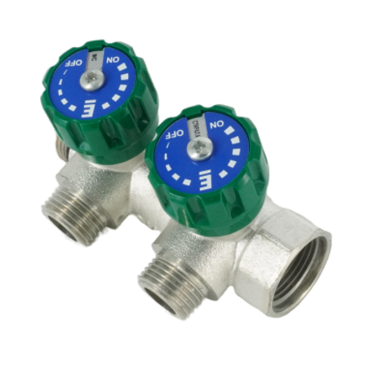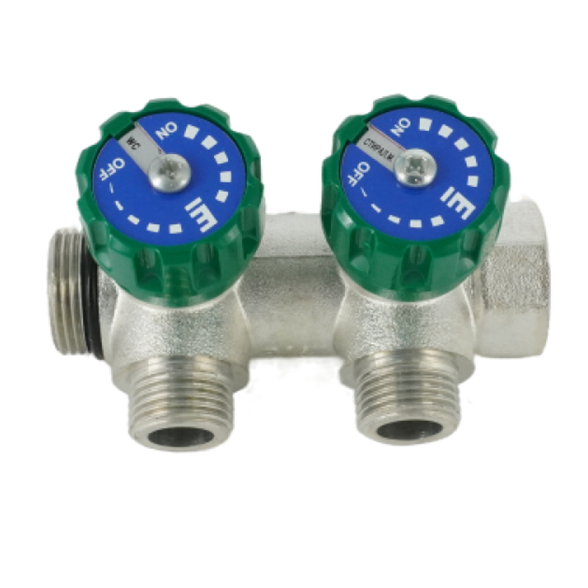 Коллектор модульный, 3/4, 2 контура, размер отвода-1/2 НР ПУ, EMW03.02T, вентили под 90°, TIN латунь купить