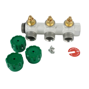 Коллектор модульный, 3/4, 3 контура, размер отвода-3/4 ЕК, EMW01.03T, вентили под 90°, TIN латунь