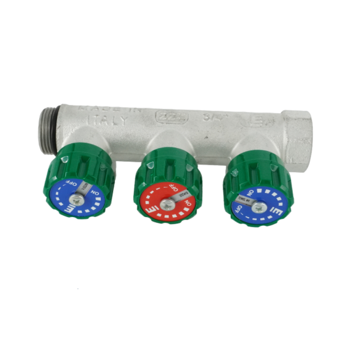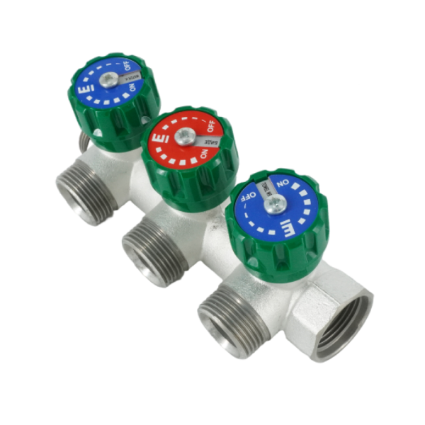 Коллектор модульный, 3/4, 3 контура, размер отвода-3/4 ЕК, EMW01.03T, вентили под 90°, TIN латунь купить