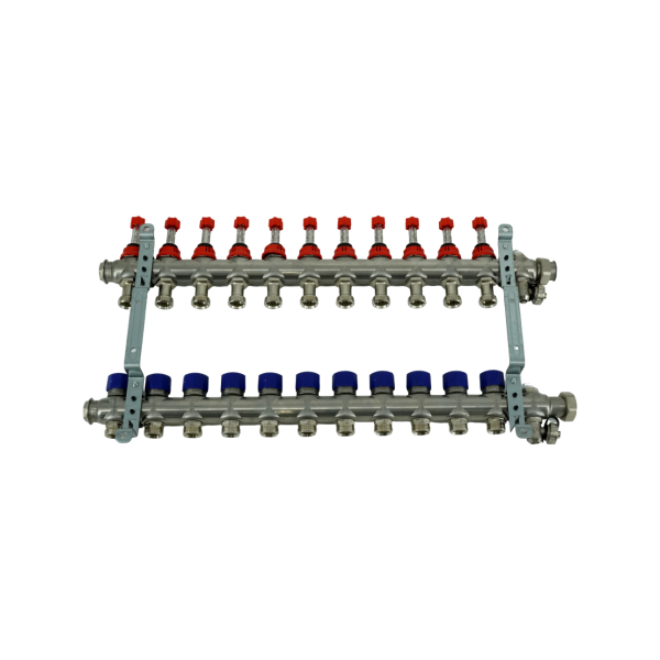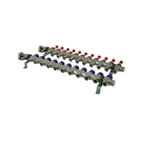 Коллекторная группа, ELSEN, 1, 11 контуров, размер отвода-3/4, PN, бар-4, T°C -от 0 до +70, EMi03.11, с вентилями и расходомерами, нержавеющая сталь