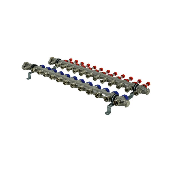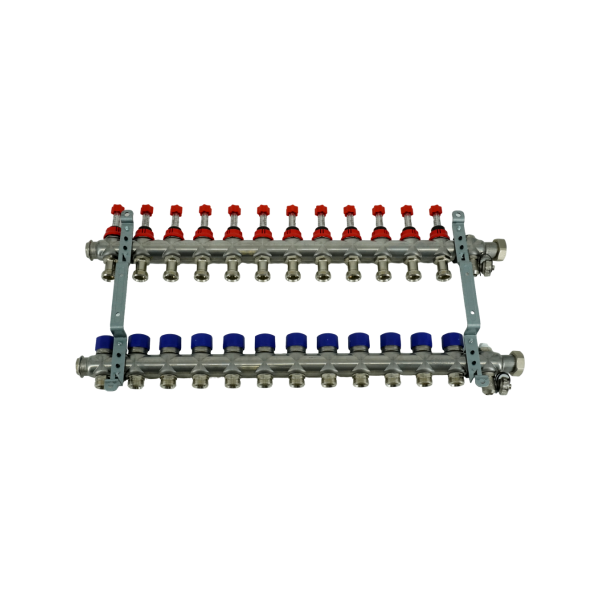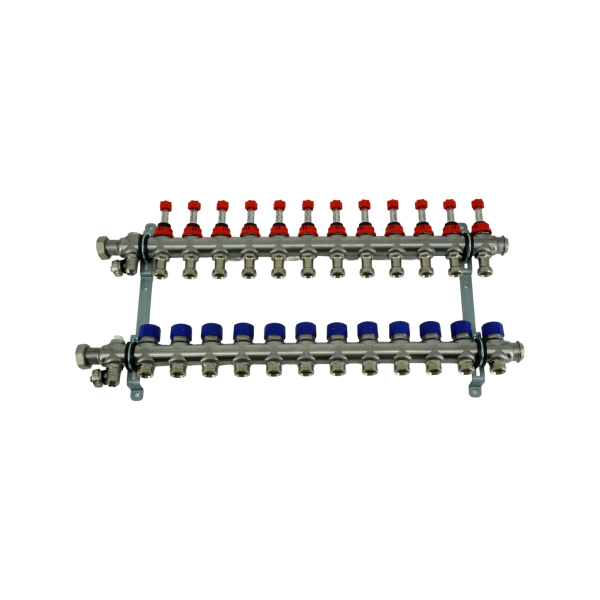 Коллекторная группа, ELSEN, 1, 12 контуров, размер отвода-3/4, PN, бар-4, T°C -от 0 до +70, EMi03.12, с вентилями и расходомерами, нержавеющая сталь
