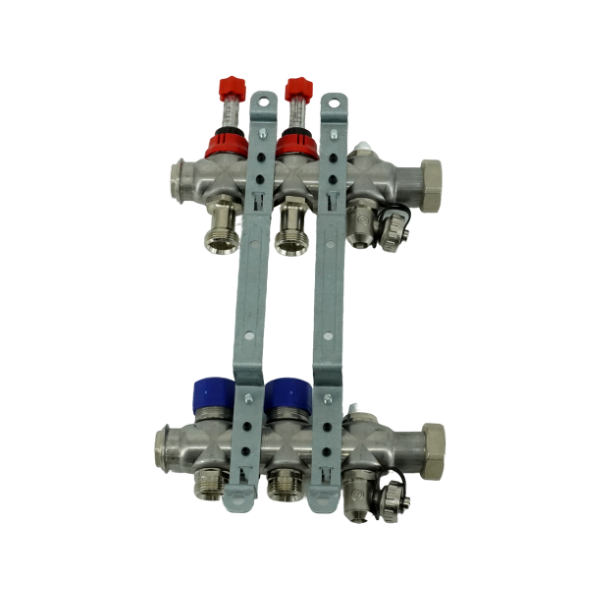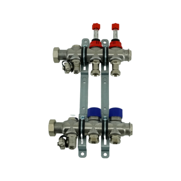 Коллекторная группа, ELSEN, 1, 2 контура, размер отвода-3/4, PN, бар-4, T°C -от 0 до +70, EMi03.02, с вентилями и расходомерами, нержавеющая сталь